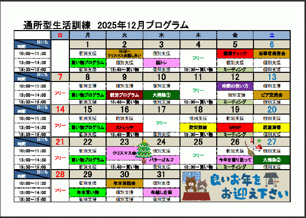 12月自立訓練(生活訓練)プログラムについて|はまかぜ【hamakaze】