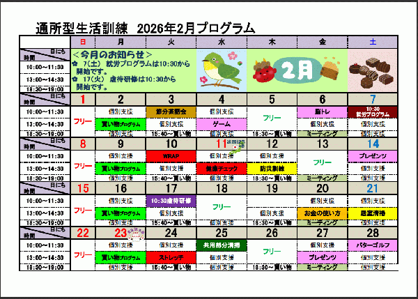 2月自立訓練(生活訓練)プログラムについて