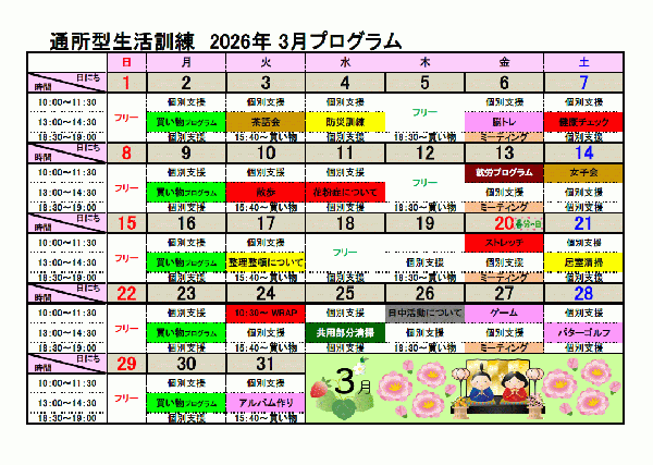 3月自立訓練(生活訓練)プログラムについて|はまかぜ【hamakaze】